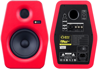 Frische Ohren und eine gute Abhöre. Beides ist unverzichtbar für einen guten Mix. Das heutige Angebot an aktiven Lautsprechern ist fast unüberschaubar geworden. Und wenn man aus dem Low Budget Bereich von 200-300 € das Paar herauskommt, ist man schnell im Bereich zwischen 200 und 500 € die Box. Hier hat man es oft mit den großen Herstellern, wie Adam, KRK oder Mackie zu tun. Seid kurzem gibt es allerdings ein noch junges Team aus dem westlichen Süden Baden Württemberg's. Die Rede ist von dem Hersteller Monkey Banana. Die Turbo Serie führt 4 Boxen (4, 5, 6, 8) und einen Subwoofer namens 10s. Als Farbausführung sind Schwarz und ein optisch auffallendes Rot erhältlich. Die Boxen, welche wie heute üblich aus MDF gefertigt, fallen sofort durch ihre eigenwillige Form auf, die an ein Hexagon erinnert. Natürlich hat diese Form auch den Nutzen, dass dadurch Schallwellenbeugungen und Reflextionen vermindert werden. Die Gehäuseecken sind abgerundet.