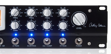 Der Channelstrip basiert auf dem beliebten Stereo-Vollröhrenvorverstärker Presonus ADL 600, den der Hersteller in Kooperation mit dem US-amerikanischen Röhren-Experten Anthony DeMaria im Jahr 2005 entwickelt hatte. Für den ADL 700 wurde die einkanalige Variante des Röhren-Preamps in Class A-Schaltung mit einer auf ihn abgestimmten FET-Kompressor- und Vierband-Equalizer-Kombination zu einem vielseitig einsetzbaren Channelstrip ergänzt. Der ADL 700 bietet sich sowohl für den Studio- als auch den Live-Einsatz an. Er besitzt Anschlüsse für alle analogen Signaltypen – XLR-Eingänge für Mic-, und Line-Signale, einen unsymmetrischen, hochohmigen HiZ-6,3mm-Klinkeneingang für passive E-Gitarre/E-Bässe und einen XLR-Ausgang. Der Röhren-Vorverstärker des ADL 700 ist mit Phantomspannung, einer Phasenumkehrfunktion, einem variablen Hochpassfilter und einer Eingangsdämpfung komfortabel ausgestattet. Außerdem verfügt der Mikrofonvorverstärker über eine variable Eingangsimpedanz – doch dazu später mehr. Zur Dynamikbearbeitung und Klangformung dienen der FET-Kompressor und der semi-parametrische Vierband-Equalizer, die beide besonders „musikalisch“ klingen sollen. Der ADL 700 verfügt zudem über eine flexible Schaltung, welche die beiden Effekte getrennt voneinander umgehen und in der Schaltungsreihenfolge umkehren lässt. Der ADL 700 macht einen überaus edlen und wertigen Eindruck. Der imposante 19-Zöller misst auch in der Tiefe fast 19 Zoll und belegt mit einer Höhe von fast zehn Zentimetern gleich zwei Rack-Slots. Das mehr als zehn Kilogramm schwere Gerät hat ein solide erscheinendes schwarzes Metallgehäuse, welches das elektronische Innenleben behütet. Seine Frontplatte strahlt mit den 17 antik wirkenden Drehreglern- und -schaltern, den elf metallenen Kippschalten und dem analogen VU-Meter einen gefälligen Vintage-Charme aus. Eher modern wirken hingegen die bei Aktivität der einzelnen Funktionen blau erstrahlenden LEDs. Die Mehrheit der Anschlüsse – namentlich die XLR-Eingänge für Mikrofon- und Linesignale, der XLR-Ausgang und der TRS-Anschluss – befinden sich auf der Rückseite des ADL 700.