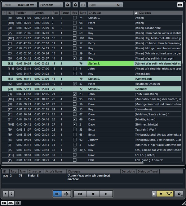 Ebenfalls neu sind die überarbeitete Control-Room- und Metering-Sektion, der Re-Record-Mode zum schnellen Wiederholen einer Aufnahme, Track Quick Control Presets, VST Connect 2 für Audio- und MIDI-Recording über das Internet sowie der Steinberg-Hub als multifunktionale Plattform mit News-Bereich und Schnellzugriff auf Ordner und Projekte. Mit der optimierten Take-Liste und Video-Overlays des überarbeiteten ADR-Taker-System können Sprechertexte im Stop Mode überprüft und bearbeitet werden. Sprach- und Geräuschaufnahmen lassen sich automatisch mit frei konfigurierbaren Attributen im Dateinamen kennzeichnen. Durch das Zuweisen von Spuren für die Aufnahme verschiedener Sprecherrollen oder Foley, lassen sich große und komplexe ADR-Sessions noch einfacher verwalten. Ebenfalls neu ist der Free Mode, der es dem User erlaubt, Aufnahmen an jedem Punkt der Timeline, unabhängig von der Take-Struktur der ADR-Marker-Liste, zu starten sowie die Möglichkeit, schnell zwischen Probe und Aufnahme zu wechseln. Nuendo 6.5 bietet auch zahlreiche professionelle Onboard-Werkzeuge und Effekte für Post-Production-Studios: Der Bass Manager bietet Tools für das Monitoring, Routing und Filtern tieffrequenter Signale mit einer schnellen Anpassung der Crossover-Frequenz und einem +10-dB-Schalter für die LFE- und Subwoofer-Sektion. Neu an Bord sind außerdem der algorithmische Revelation Reverb mit mehr als 70 Presets und Magneto 2, eine Neuauflage von Steinbergs Bandsättigungs-Plug-in.