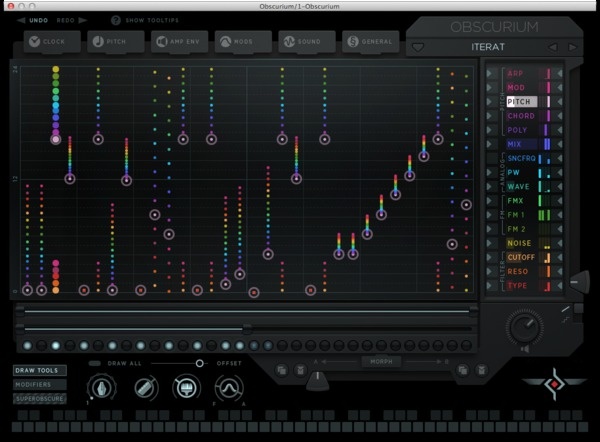 In Zuge der Entwicklung der elektronischen Musik in den 60er/70er Jahren wurden seinerzeit auch die ersten Step-Sequenzer entwickelt. Der Name rührt daher, dass jedes Klangereignis Schritt für Schritt, also step by step, mit seinen Eigenschaften wie Tonhöhe und Dauer programmiert werden kann. Das passte sehr gut zu den ersten analogen Synthesizern, konnte man doch eine Sequenz programmieren, sie im Loop laufen lassen und in Realtime den Sound verändern. Man bedenke, Ableton, Cubase oder Logic gab es zu der Zeit noch nicht. Die wohl bekanntesten Künstler, die damals Step-Sequenzer als Stilmittel in ihrer Musik eingesetzt haben, sind Klaus Schulze und Tangerine Dream, die bereits ab Mitte der 1970er-Jahre elektronische Musik komponierten. Dass man beim Software-Hersteller Sugar Bytes ein großes Faible für Sequenzing hat, zeigt die Produkt-Palette der Berliner Firma. Neben Looperator (Test in Heft 02/2015) hat man sich schon erfolgreich mit weiteren Plug-ins wie Effektrix oder Consequenze an Step-Sequenzer-Konzepten versucht. Dabei ist es immer wieder schön anzusehen, was Sugar Bytes zu diesem Thema immer wieder Neues einfällt und wie bestehende Konzepte weiter ausgebaut werden. Ging es beim Looperator noch darum Audiomaterial mit Effekten step by step zu versehen, kommt unser Testkandidat Obscurium mit eigener Klangerzeugung daher und stellt sich als markante Kombination aus Synthesizer und Step-Sequenzer vor. In Obscurium lassen sich ganze Soundlandschaften mit Hilfe von 16 Parametern und mit bis zu 32 Steps im sogenannten Motion-Sequenzer auf eigentümliche Art erzeugen. Durch Automationen und Modulationen kann das Plug-in extrem lebendige, sich permanent morphende Sequenzen liefern. Wem die interne Klangerzeugung nicht reicht, kann als besonderen Clou seinen Lieblings-VST-Synthesizer in Obscurium laden und vom Motion-Sequenzer ansteuern lassen. Oben drauf werden die Sequenzen im zentralen Dialog auch noch graphisch sehr ansprechend dargestellt und animiert, was dem Plug-in einen eindrucksvoll futuristischen Touch verleiht. Grund genug für uns, um uns auf eine Reise in unbekannte Soundgefilde zu begeben und Obscurium auf Herz und Nieren zu prüfen.