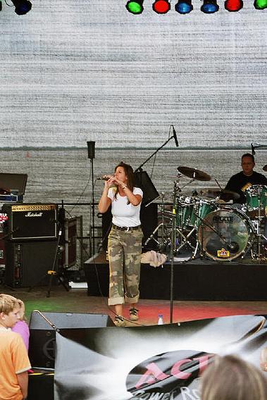 Melanie "Melli" BellingAls Henne im Korb taucht sie in den Sound-Mix der Band ein und zelebriert mit ihrer Stimme - mal zart, mal hart- den weiblichen Power-Rock auf der Bühne und komplettiert damit die Band auf harmonische und außergewöhnliche Art und Weise